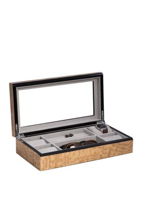 Bey Berk Lacquered Burl Wood Valet Jewelry Box With Glass Top Belk